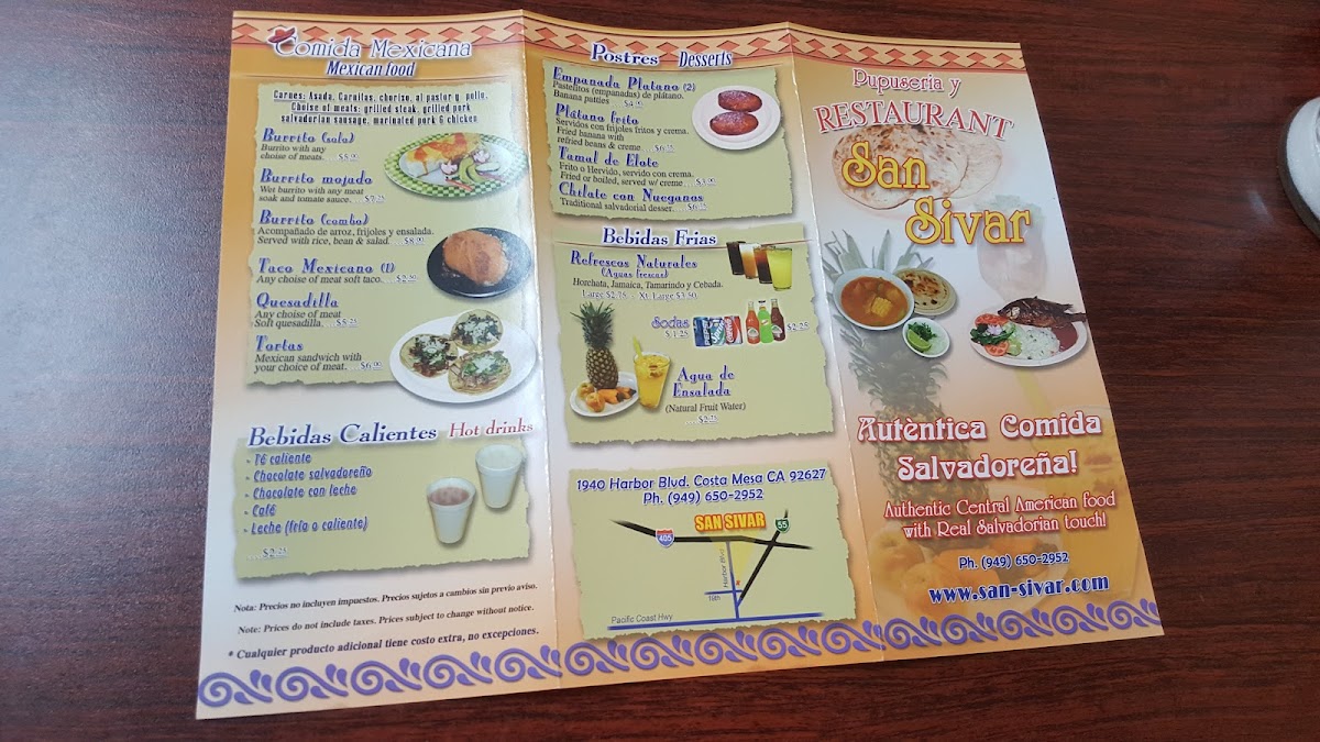 Welcome to San Sivar, a vibrant gem located at 1940 Harbor Blvd, Costa Mesa, CA 92627, where the spirit of El Salvador dances on your palate! This cozy restaurant has quickly made a name for itself as the go-to spot for authentic salvadoreño cuisine. The moment you step through the doors, you're greeted with friendly smiles and a warm atmosphere that instantly makes you feel at home.